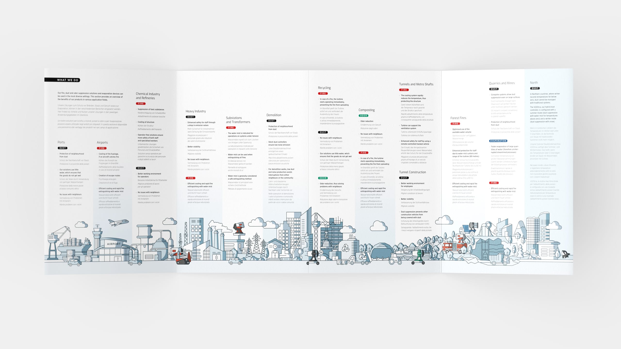 EmiControls needed a way to visually communicate the diverse areas where their products operate. To meet this need, we developed a modular illustration that showcases all their fields of application. The Illustration can be adopted for print, web and animation, with usage ranging from brochures to online navigation and trade shows. I illustrated and animated the piece in close collaboration with the client.